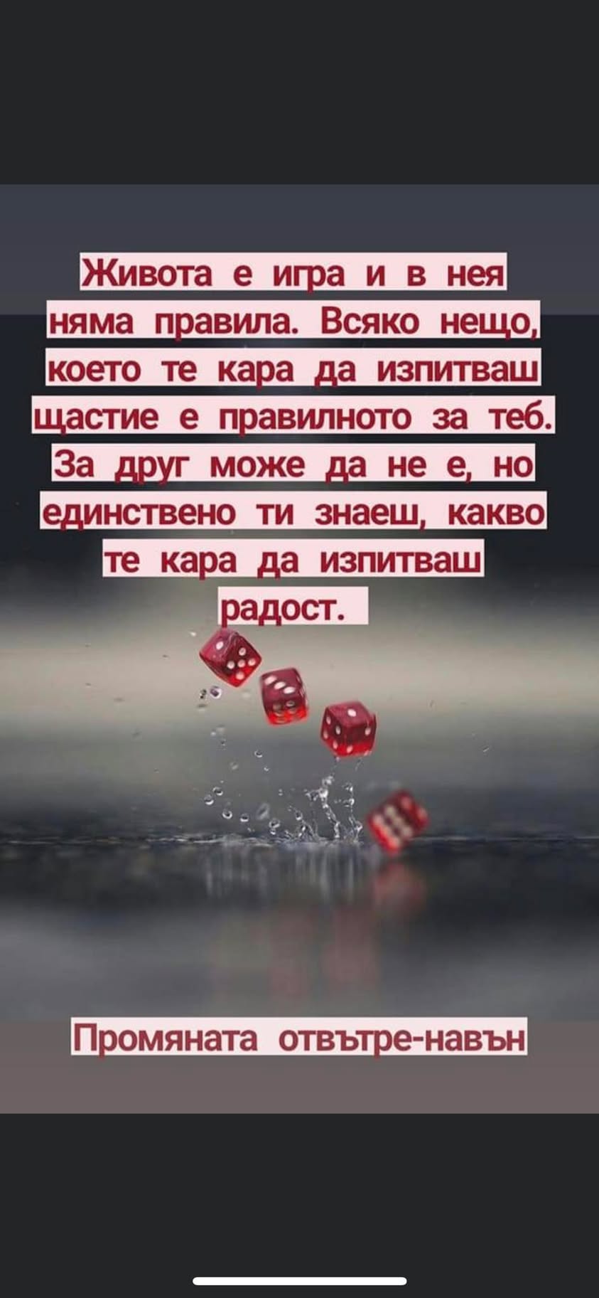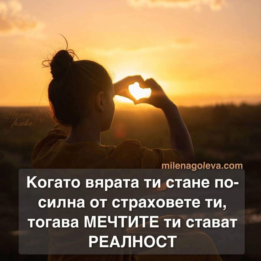 "Вярвам в себе си и следвам мечтите си. Съдбата винаги ще ме води по пътя на истинското ми предназначение!"