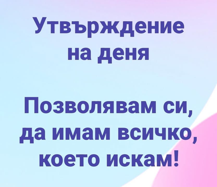 СЕГА АЗ ПРИЗОВАВАМ ЛЮБОВТА, СИЛАТА И МЪДРОСТТА НА СВОЯ ВИСШ АЗ. ПОЯВИ СЕ, ВЪЗЛЮБЕНИ ВИСШ АЗ.