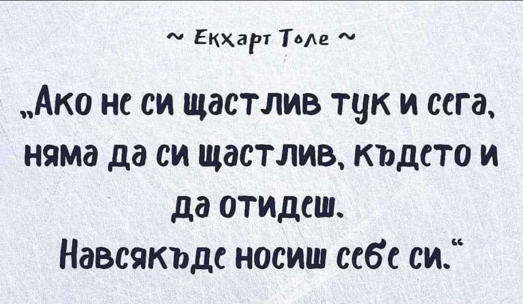 Не чакайте да се чувствате добре, да отслабнете или да имате нова работа или връзка. Започни да правиш нещата сега и ги прави по най-добрия възможен начин.
