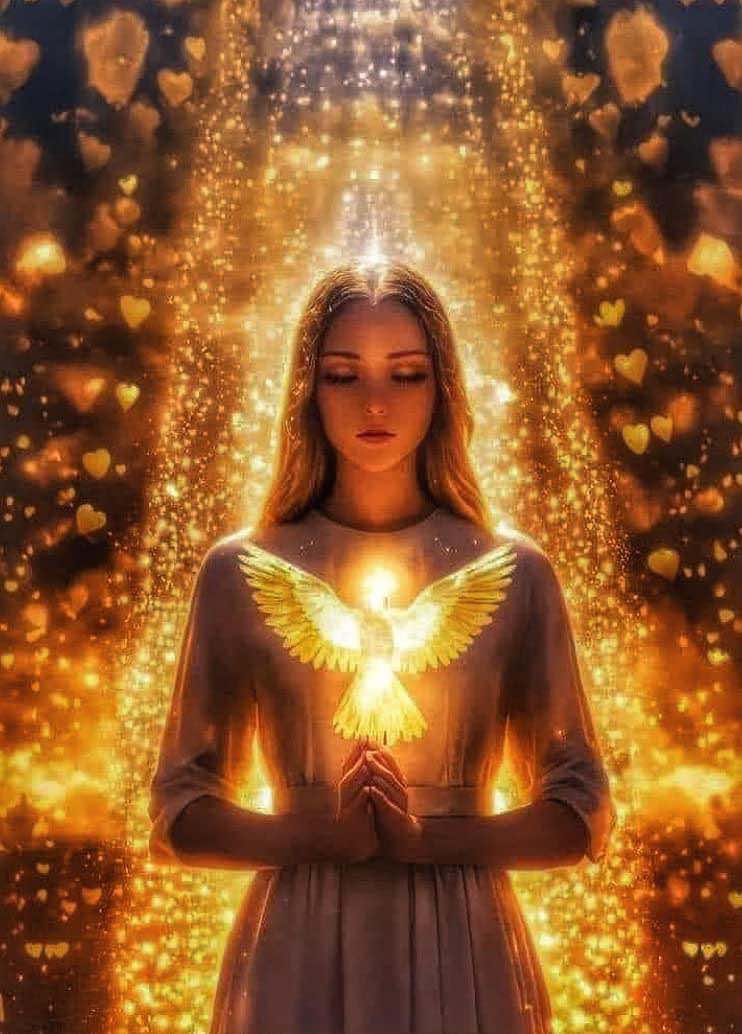 Отворете сърце и душа и си спомнете, че винаги сме енергия, проявена сега в тяло. И призовете силата на оживяващия Дух, който на Петдесетница дава небесни дарове на търсещите и искащите, като подхранва искрата на Светия дух във всеки от нас.💜