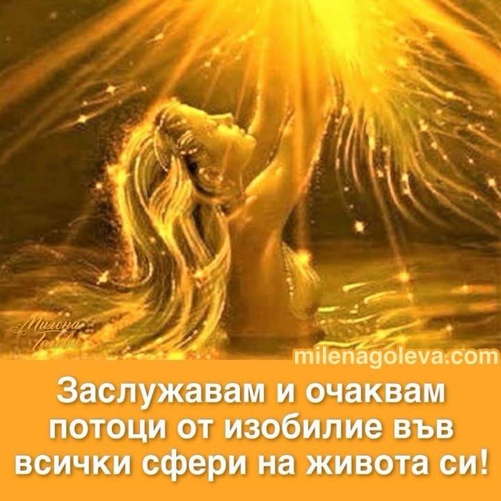 СЕГА АЗ ПРИЗОВАВАМ СИЛАТА И ПРИСЪСТВИЕТО НА СВОЯ СОБСТВЕН ВИСШ АЗ. ПОЯВИ СЕ, ВЪЗЛЮБЕНИ ВИСШ АЗ. РАЗКРИЙ МИ СЕ. СПОДЕЛИ СВОЯТА ЛЮБОВ, СИЛА И МЪДРОСТ С МЕН. БЛАГОДАРЯ ТИ, ВЪЗЛЮБЕНИ ВИСШ АЗ.