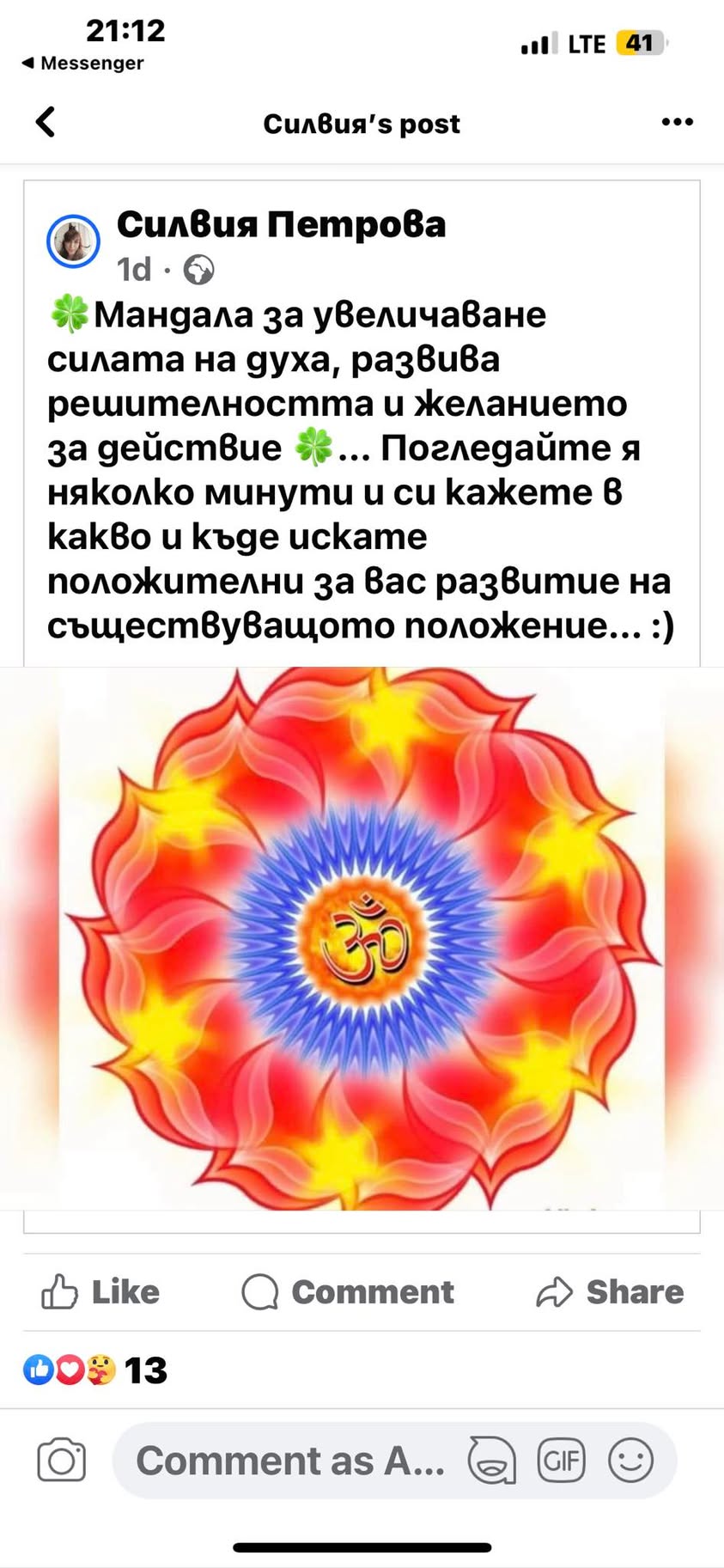 Гледайте мандалата пет минути, отпуснете се и си пожелайте всичко, което искате...След това вижте какви промени ще настъпят в живота ви... 🔱💥🔱💥🔱 :)