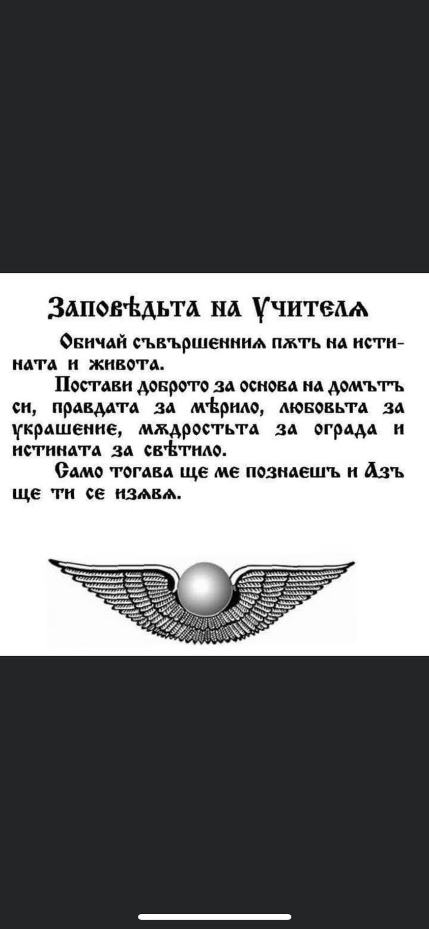 „Аз познавам един Бог на Любовта, един Учител на Мъдростта, един Дух на Истината, Които призовавам да дойдат и с животворната Си сила да разпръснат всички зли влияния.“